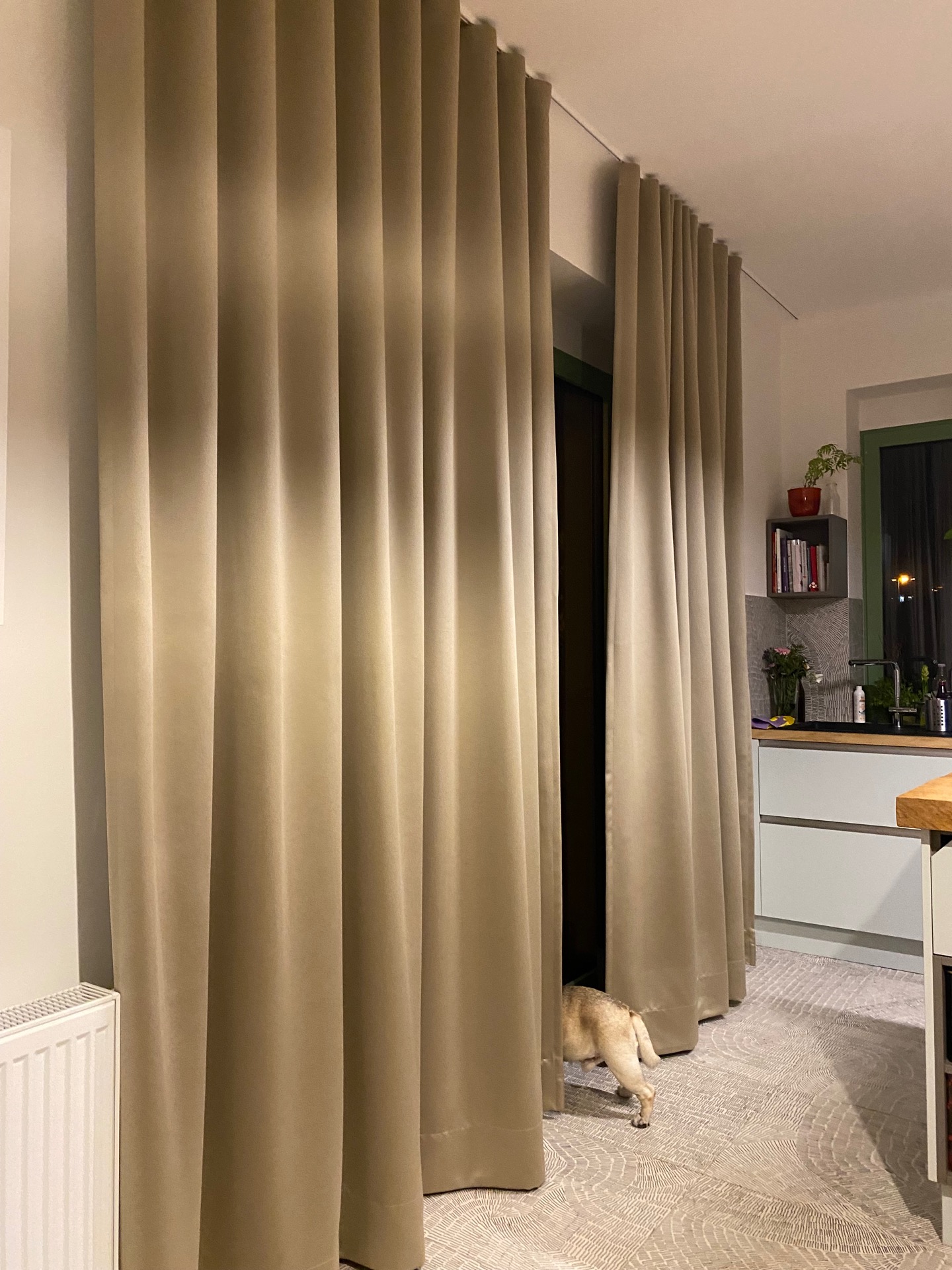 Závěsy řasené vlnou v bytě u pražského Rudolfina