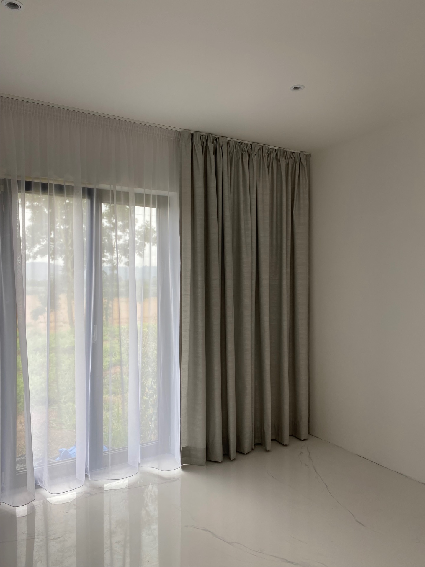 Voálové záclony, black-outové závěsy a římské rolety ve vile v Liberci